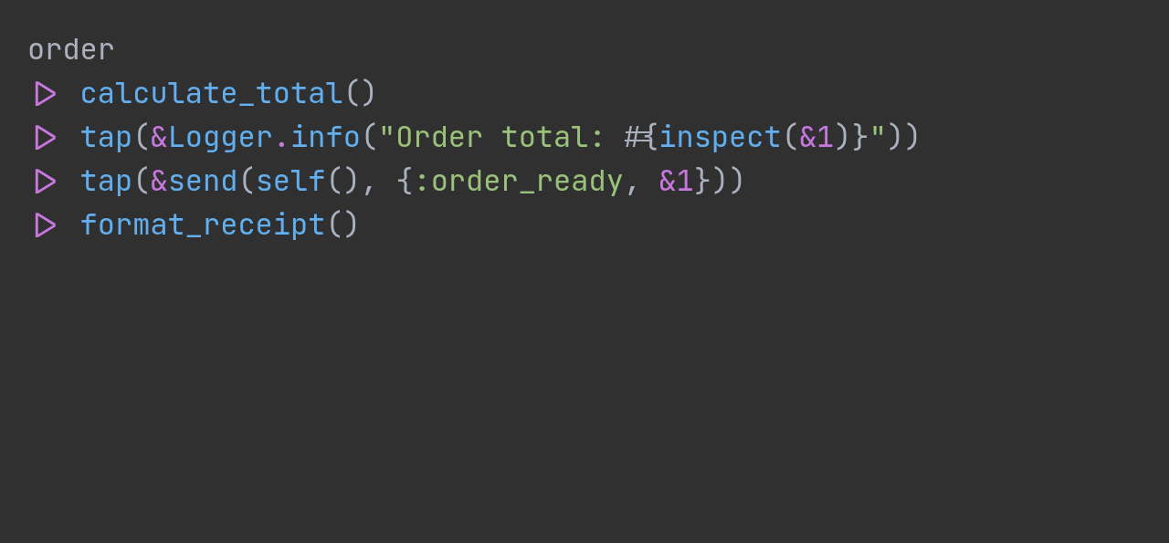 Need to log, send a message, or cache a value mid-pipeline without breaking the flow? tap/2 executes a function for its side effect, ignores the retur...